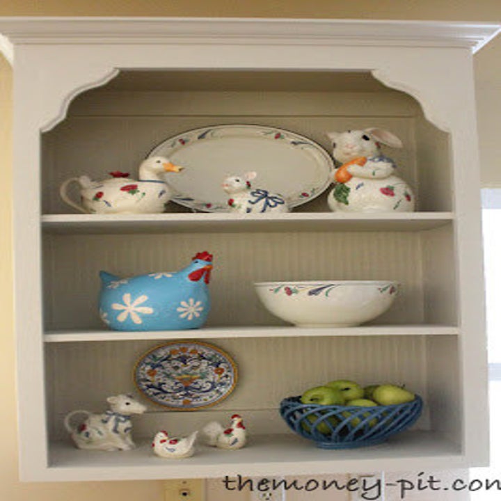 11. Remove the doors from a cabinet in your kitchen for low-cost but trendy open-shelving.