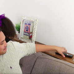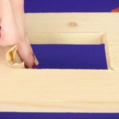 3. Tape the wood pieces to the mirror to hold them up until the adhesive dries.
