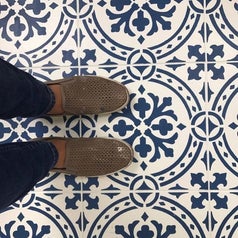 1. Use the spreader to scrape the mortar onto the back of each self-spacing tile.