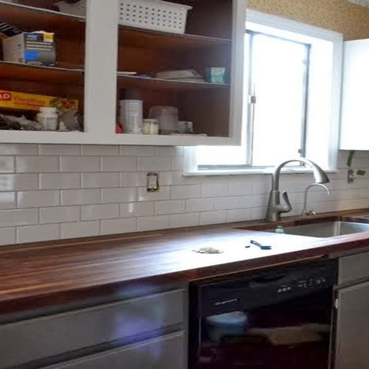 1. Add a backsplash to your kitchen with some self-spacing tiles and mortar.