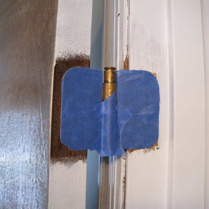 1. Lay blue tape over the hinges, cutting the excess away with an exacto knife.